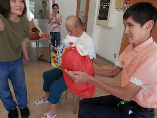 誕生者3名の利用者さんにスタッフから1人1人にプレゼントが手渡されました。