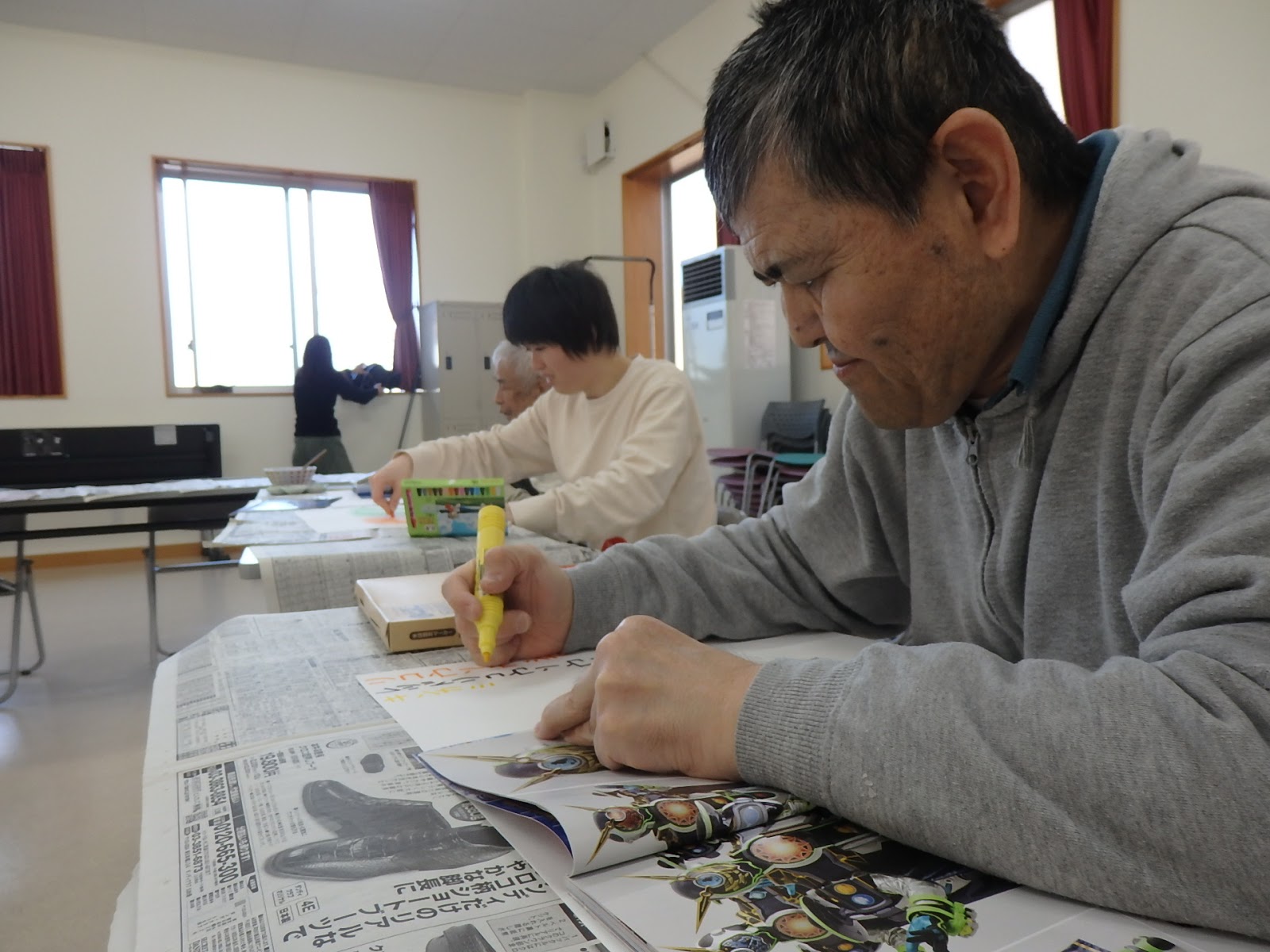 用紙にそれぞれの絵を描いたり、シールを貼ったりし楽しい時間を過ごすことが出来ました。
